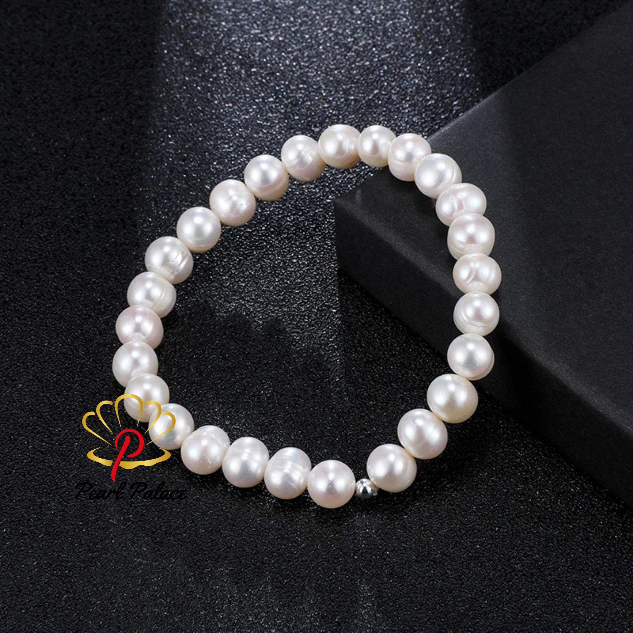 6-7mm Natural Freshwater White Pearls Punch Elastic Rope Bracelet AA Flat Round Main Stone: Freshwater pearl Pearl Shape: Round pearl Pearl Color: White Pearl Size: 6-7mm