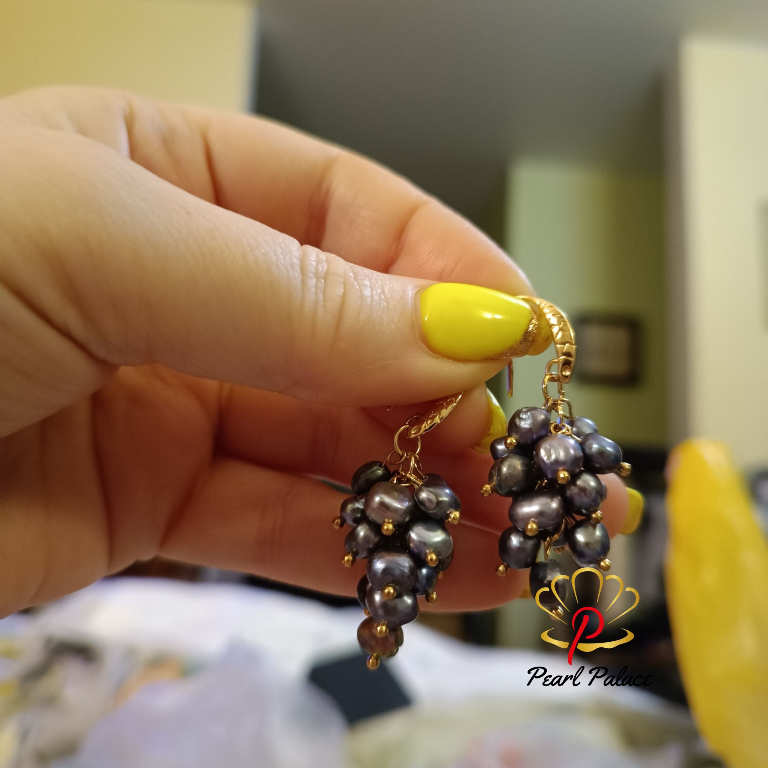 Black 9-10mm Large natural freshwater pearl earrings for women, 925 silver jewelry.