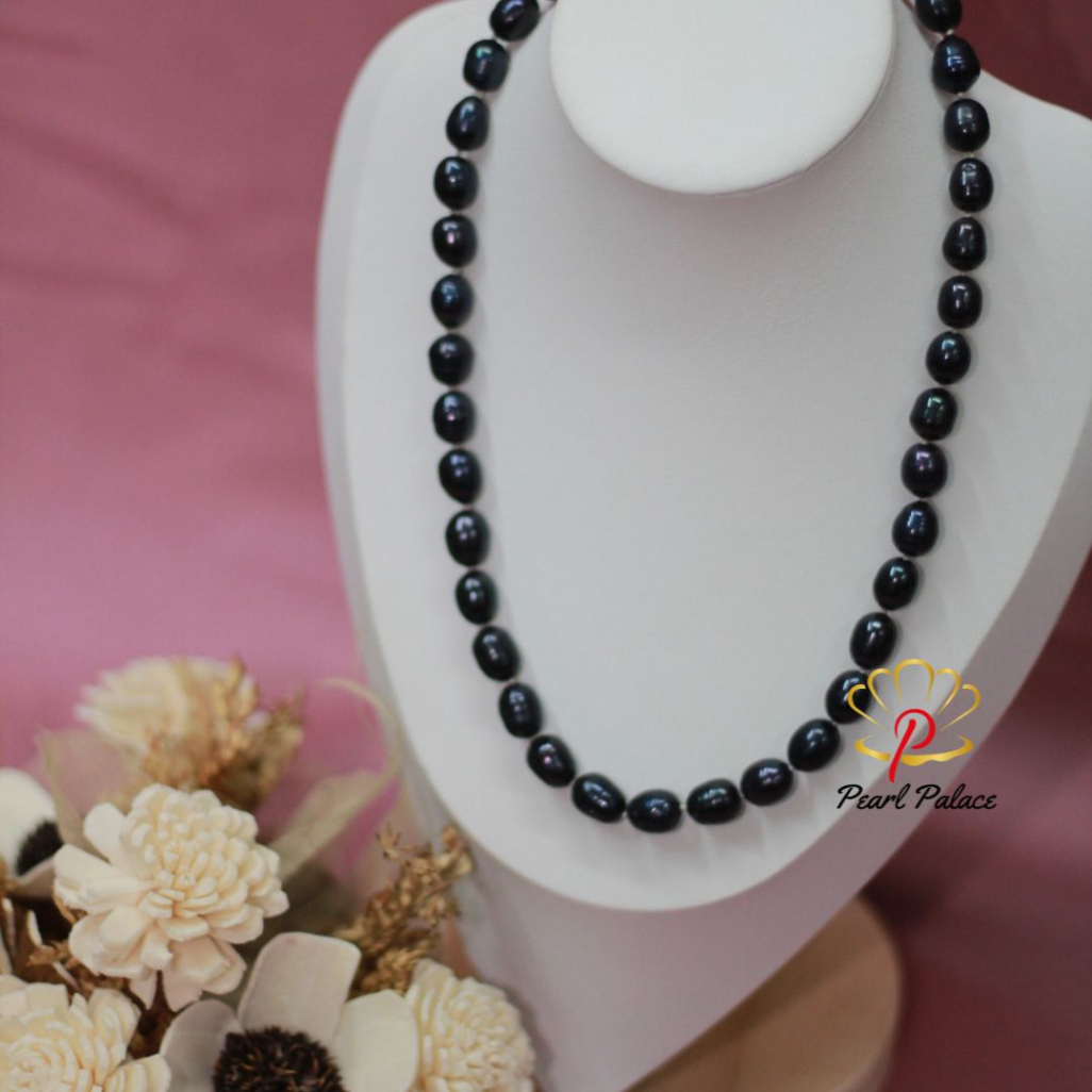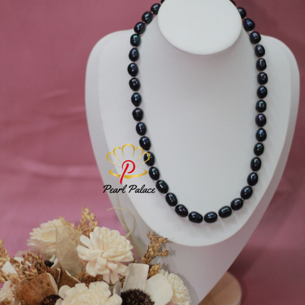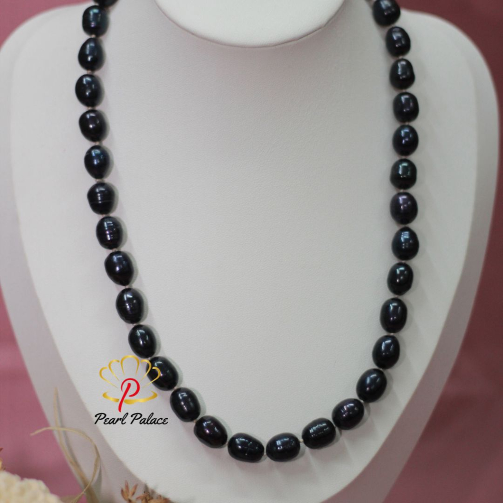 Product name: Black Rice Pearl Necklace (9-10mm) Pearl Size: 7-8 mm Pearl Grade: AAA Pearl Length 17-18 Inch.