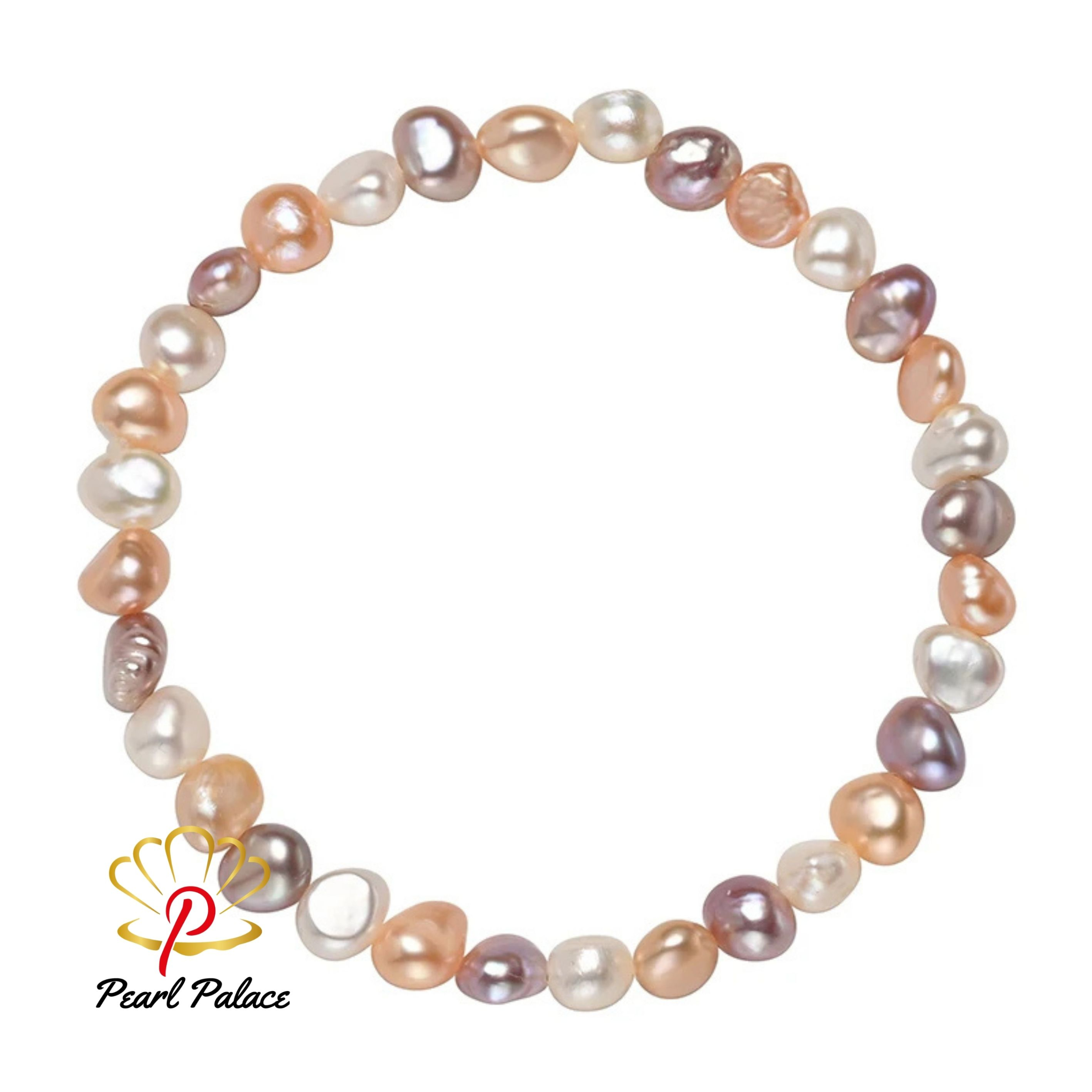 This vibrant bracelet showcases a beautiful mix of white, pink, and purple freshwater baroque pearls, creating a playful yet elegant accessory. The elastic design ensures a comfortable fit, making it perfect for various occasions.