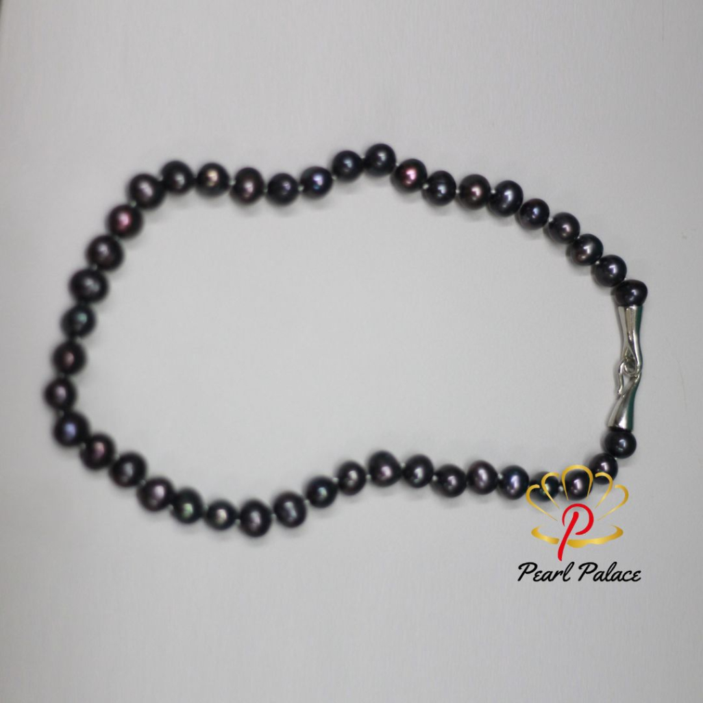 Product name: Exclusive 9-10mm Black Freshwater Pearl Set with Luxury Clasp Pearl Size: 7-8 mm Pearl Grade: AAA Pearl Length 17-18 Inch.