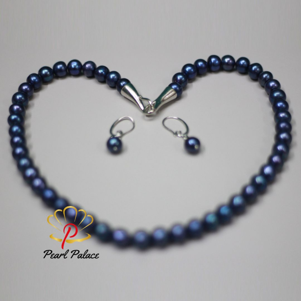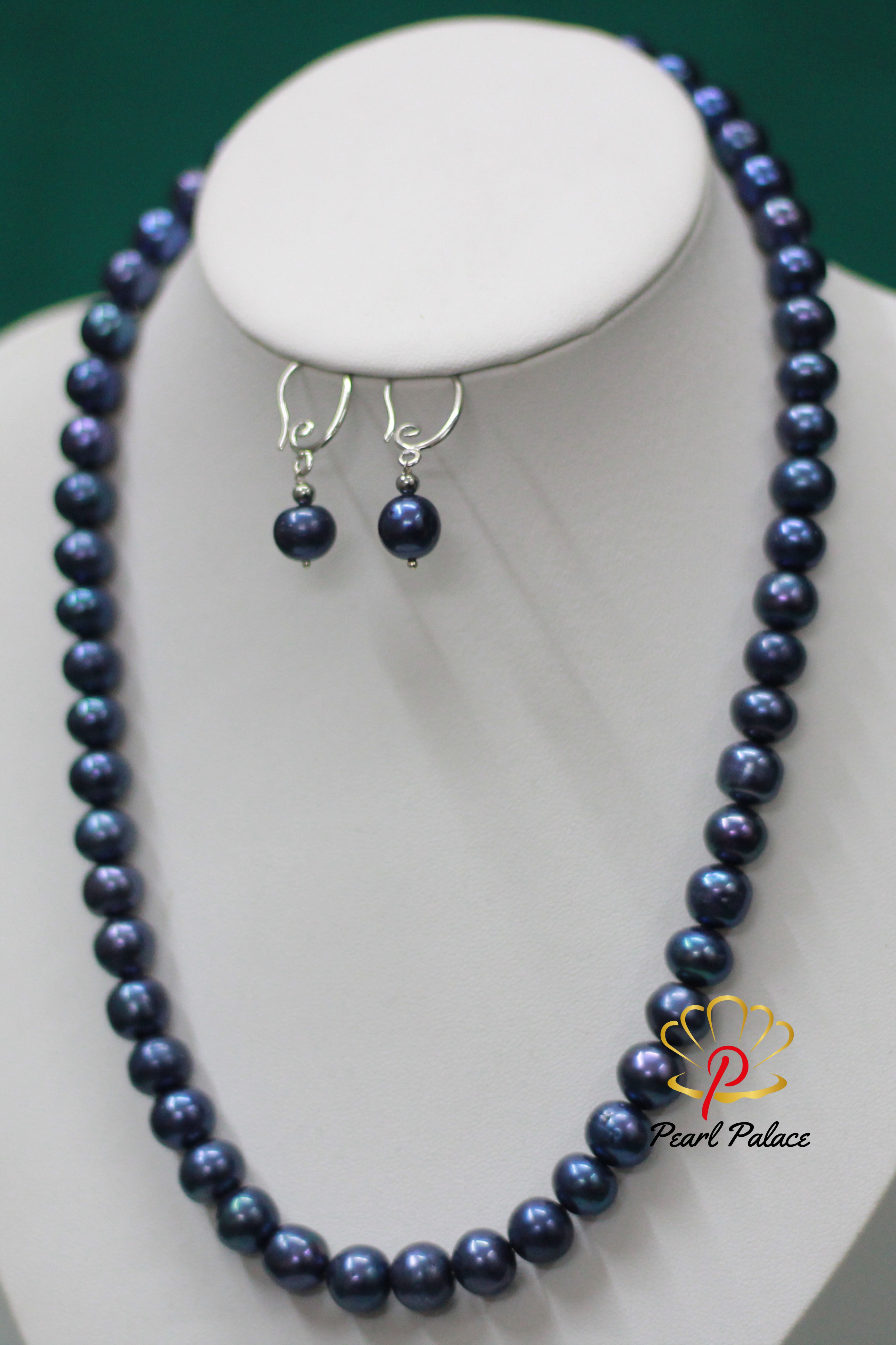 Product name: Exquisite 9-10mm Blue Freshwater Pearl Earring Set with Exclusive Clasp Lock Pearl Size: 7-8 mm Pearl Grade: AAA Pearl Length 17-18 inch.
