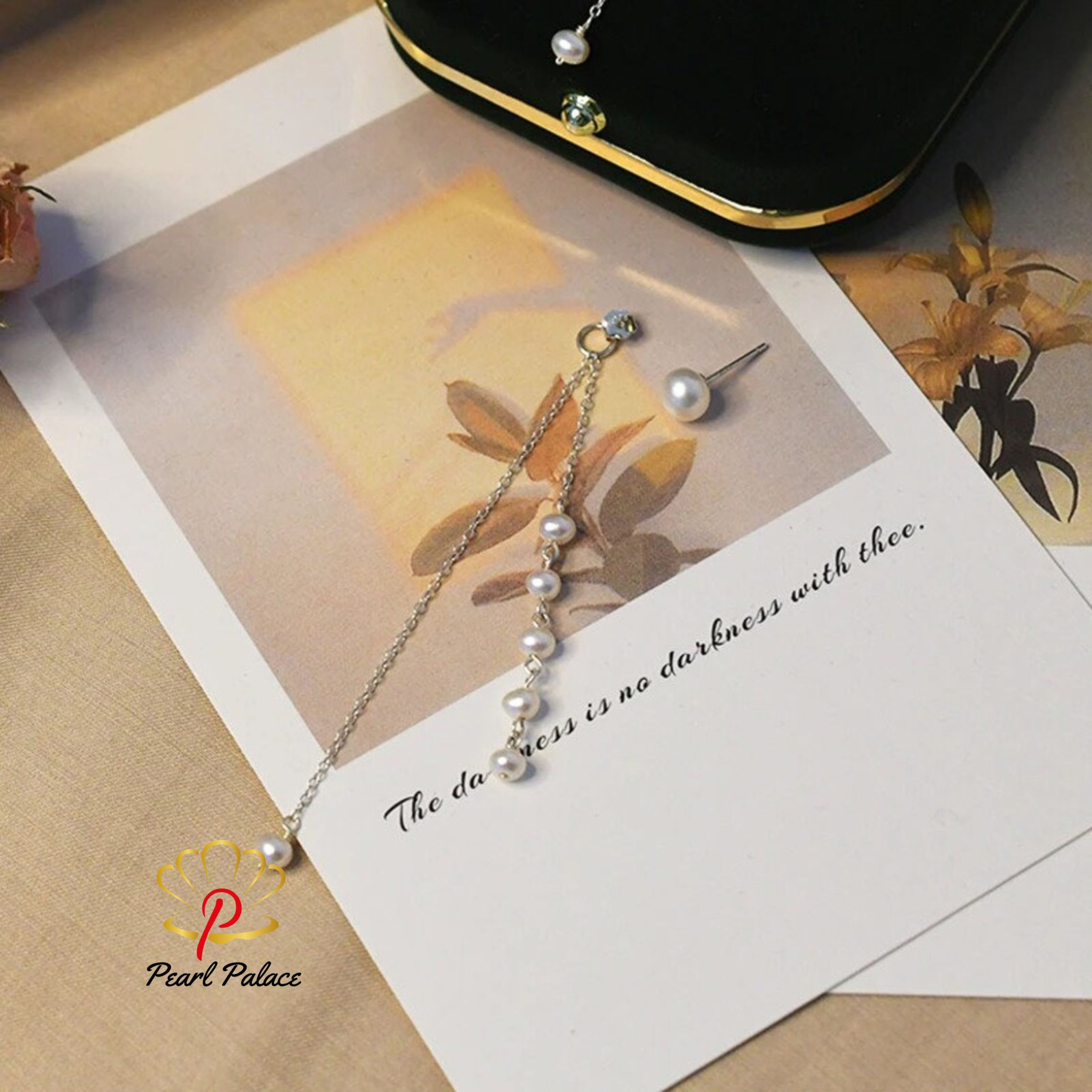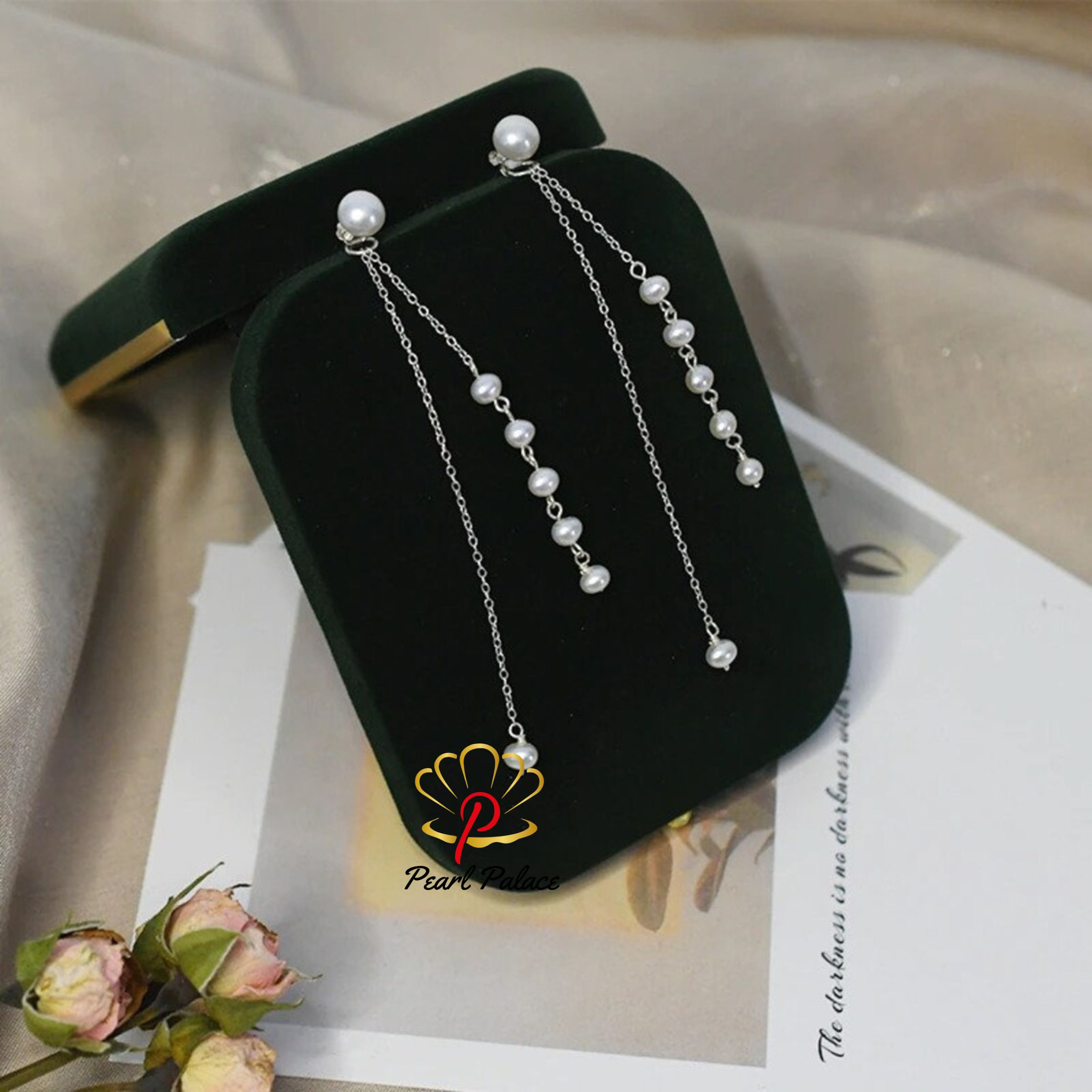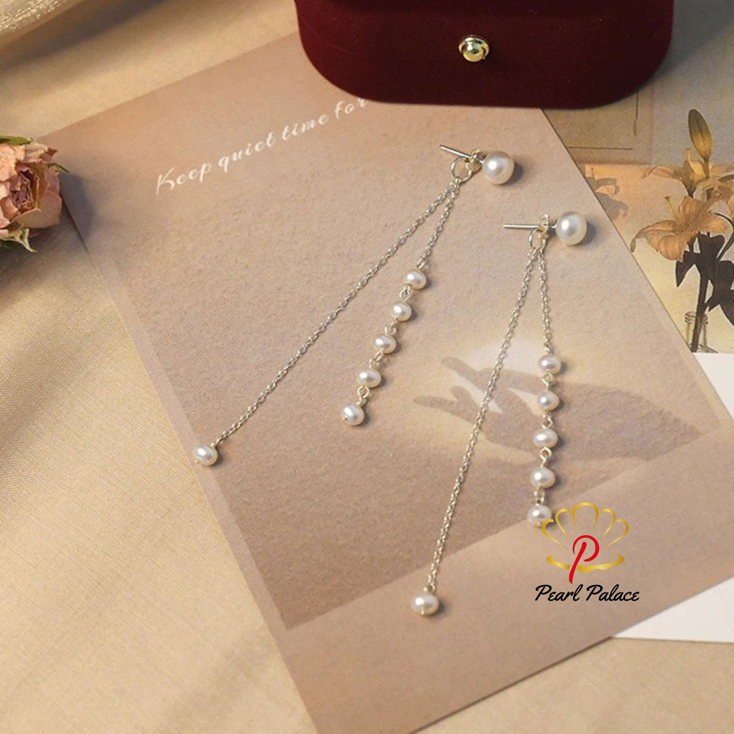 With a delicate 8-centimeter length, these earrings offer a graceful, elongated silhouette that enhances both casual and formal ensembles. The soft, natural glow of the pearls combined with the fluid tassel design makes them a statement piece, perfect for special occasions or everyday luxury.
