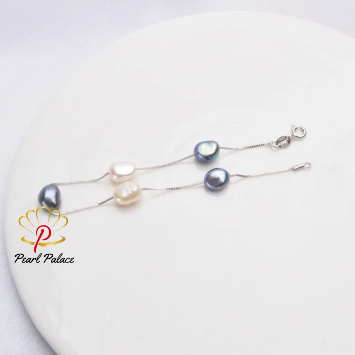 **Genuine 925 Sterling Silver Natural Baroque Pearl Bracelet – Elegant Freshwater Pearl Jewelry for Women**