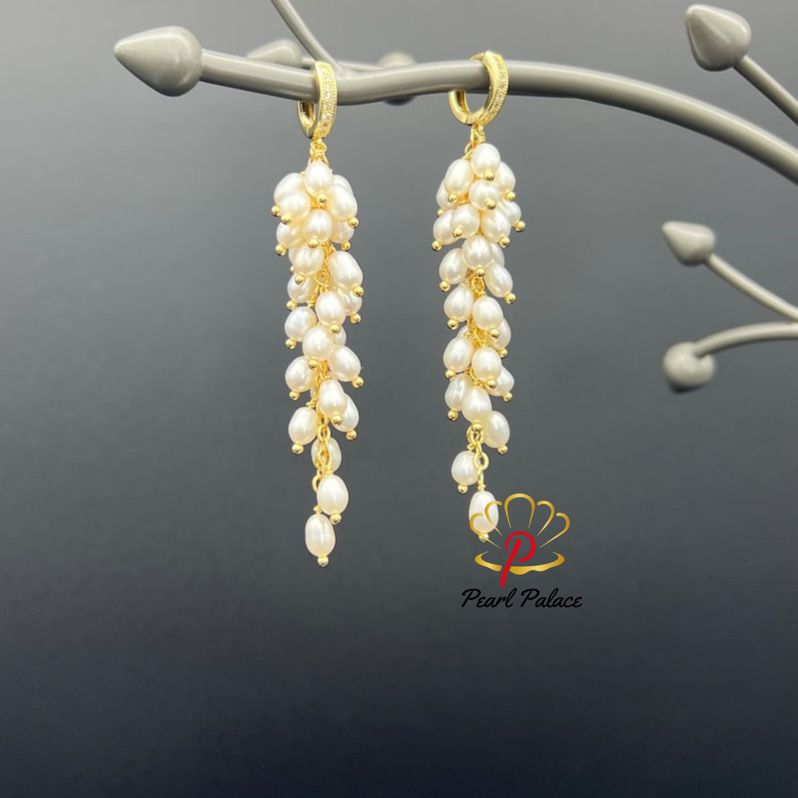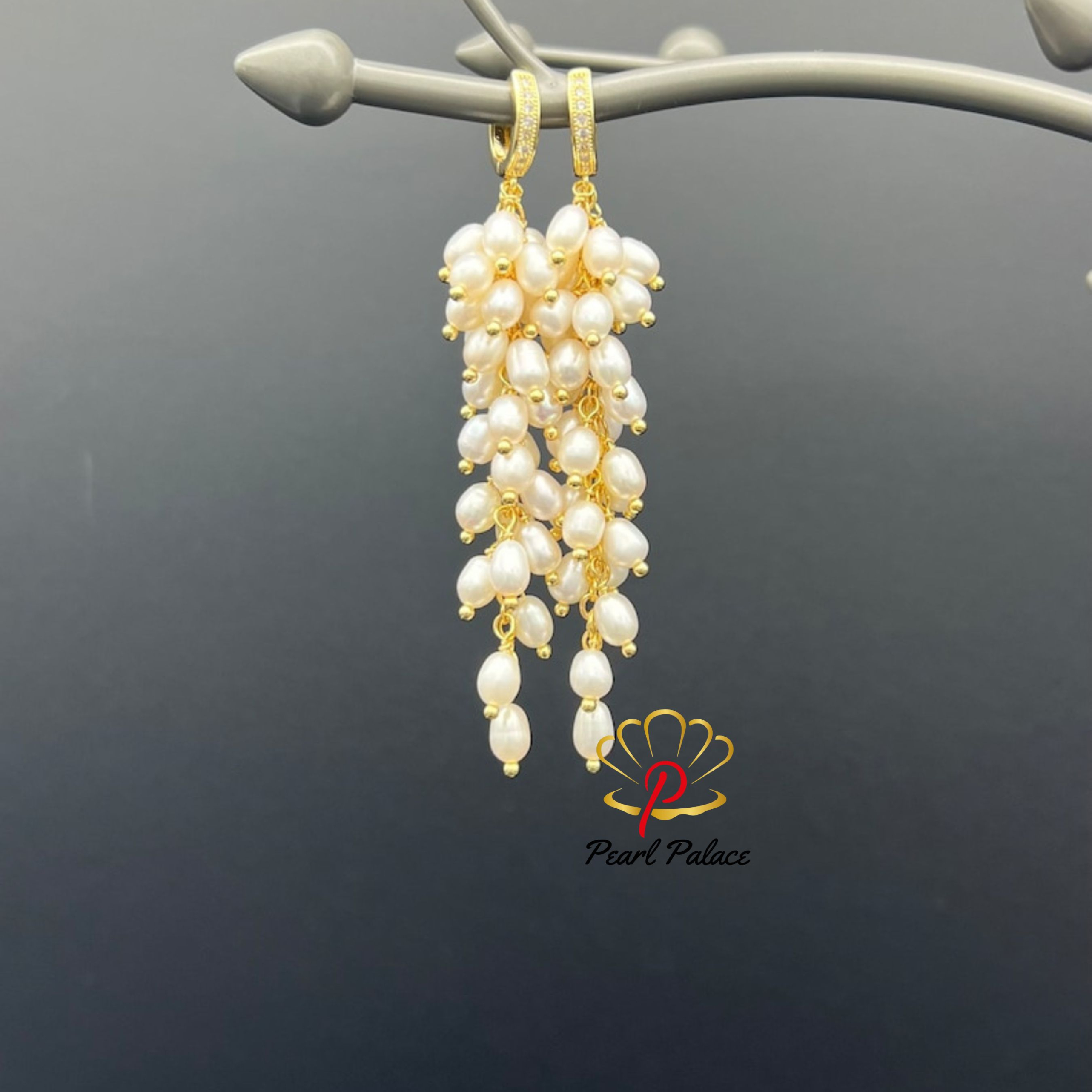 Radiate elegance with these Gold-Plated Cluster Earrings, featuring natural white freshwater pearls for a timeless and sophisticated look. Designed with meticulous craftsmanship, these earrings showcase 4-5mm luminous pearls, delicately arranged in a cascading cluster that adds movement and grace to your style.