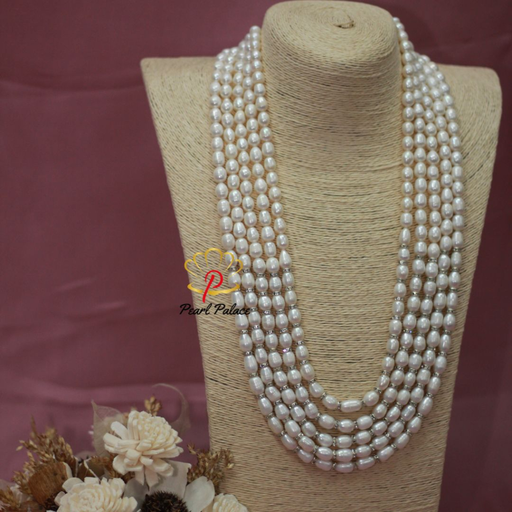 **Men's Wedding 5-Layer Necklace for Sherwani (White Rice Pearl)**