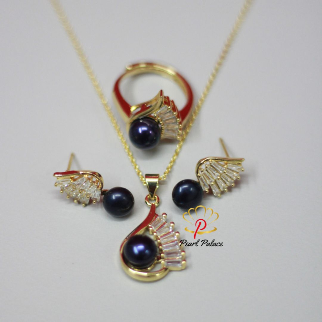 Pink & Black Pearl Pendant Set A captivating blend of elegance and contrast, this Pink & Black Pearl Pendant Set is designed to make a bold yet sophisticated statement. Featuring high-quality AAA-grade pearls, the set includes a stunning pendant paired with matching earrings, perfect for any occasion.