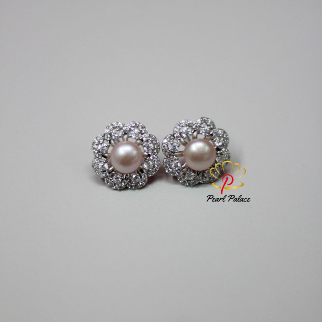 pink 9-10mm Large natural freshwater pearl earrings for women, 925 silver jewelry.