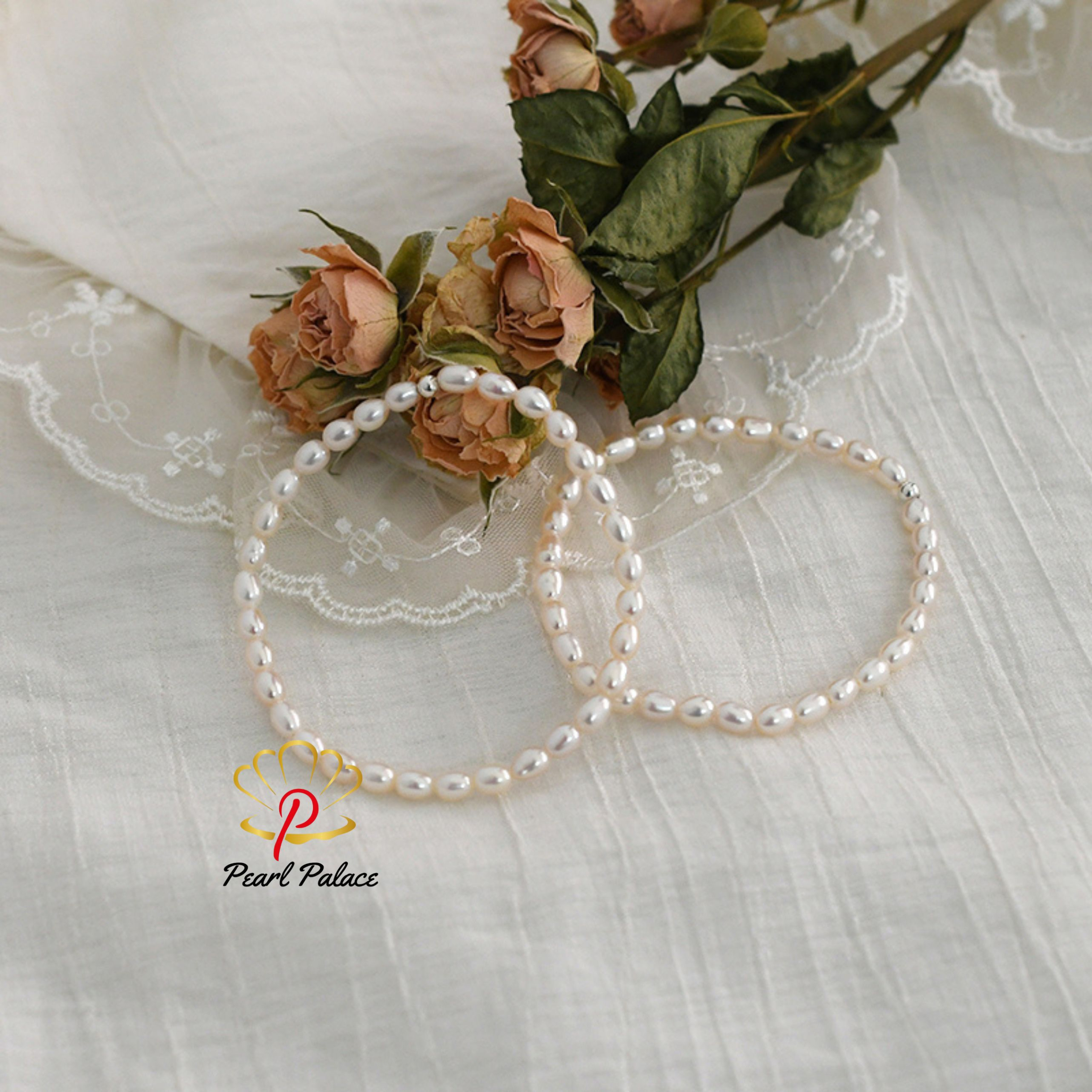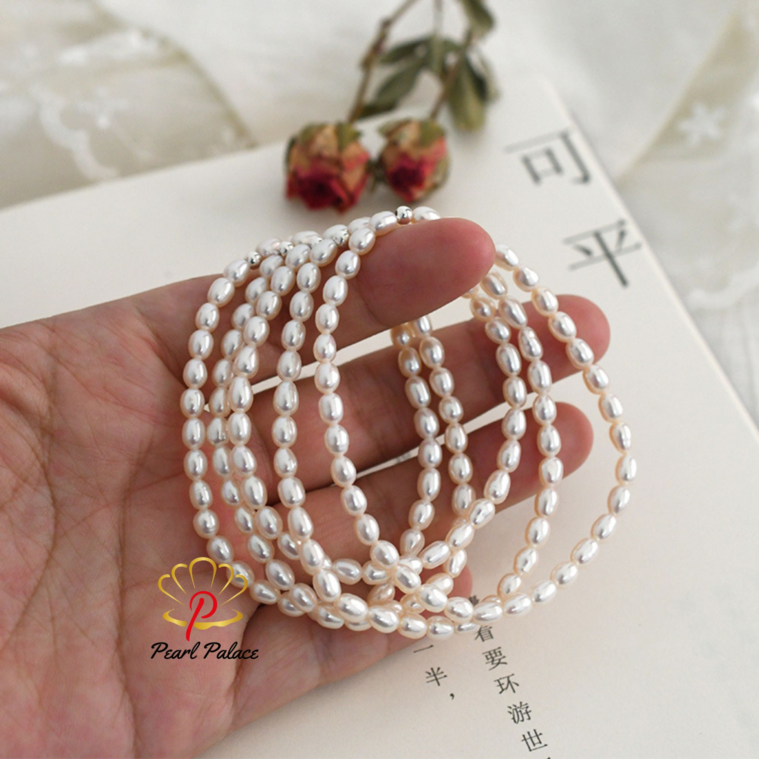 Real Natural Freshwater Pearl Elastic Bracelet 925 Silver Bead Jewelry Pearl Size: About 4-5mm