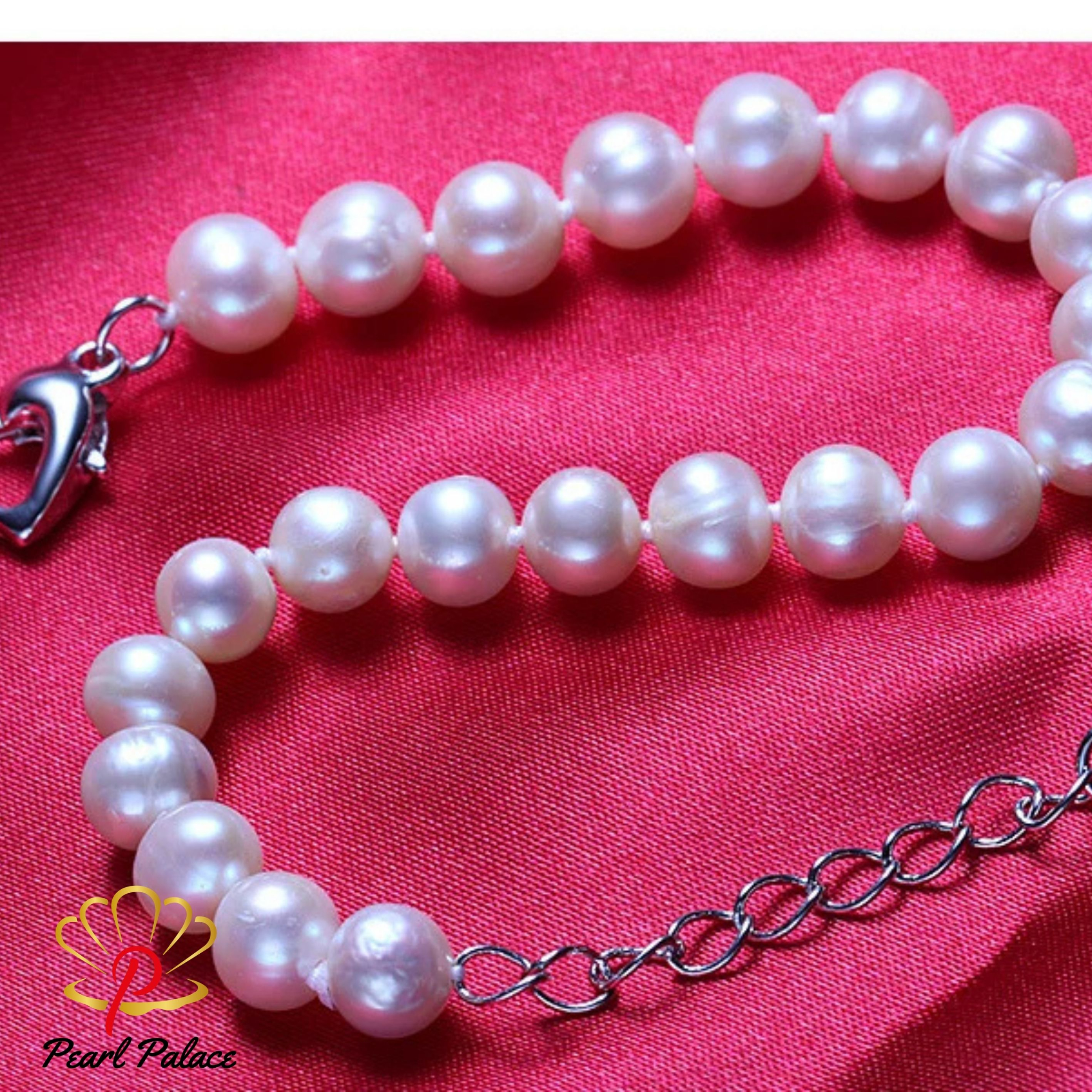 Real Natural Near Round Pearl Jewelry Bracelet,925 Sterling Silver Love Buckle Product Type: Pearl Bracelet Pearl Color: White Pearl Size: 7-8mm