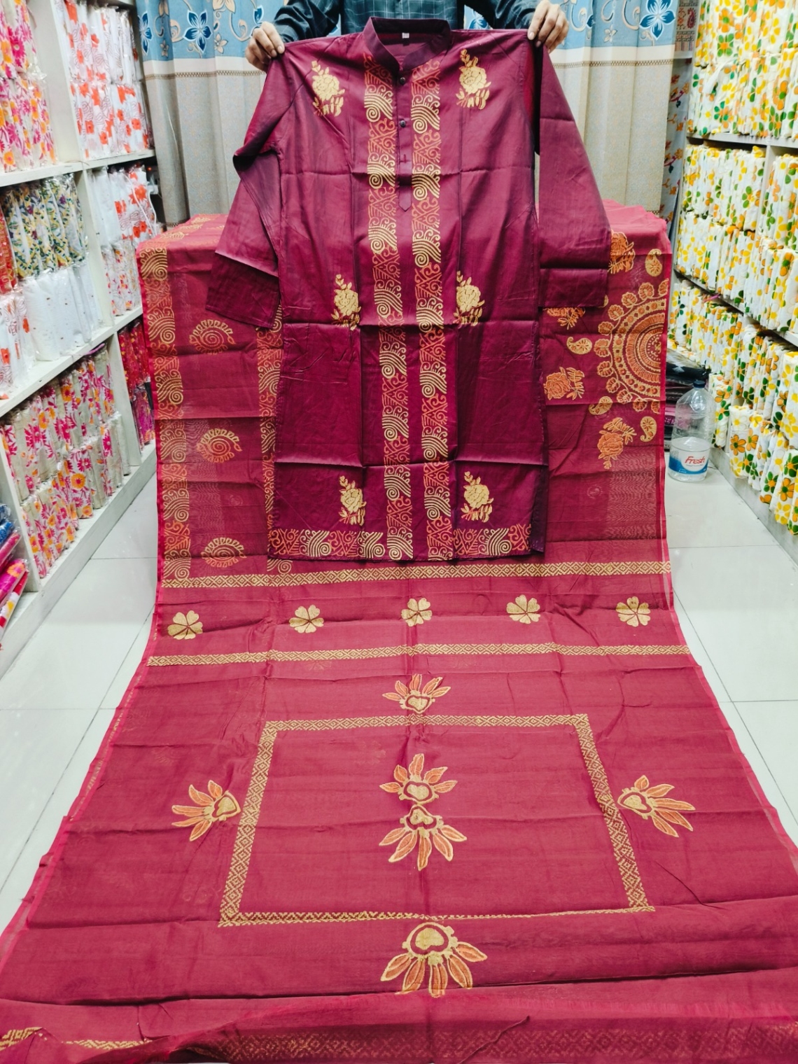 আপনার ভালোবাসার মানুষের সাথে মিলিয়ে পরুন ট্রেন্ডি শাড়ি পাঞ্জাবি, সেরা ট্রেডিশনাল কাপল ড্রেস,হাফ সিল্ক শাড়িতে স্কিনপ্রিন্ট কাজ করা এবং ধুপিয়ান সিল্ক পাঞ্জাবিতে ব্লক প্রিন্ট কাজ করা সেরা কালেকশন |