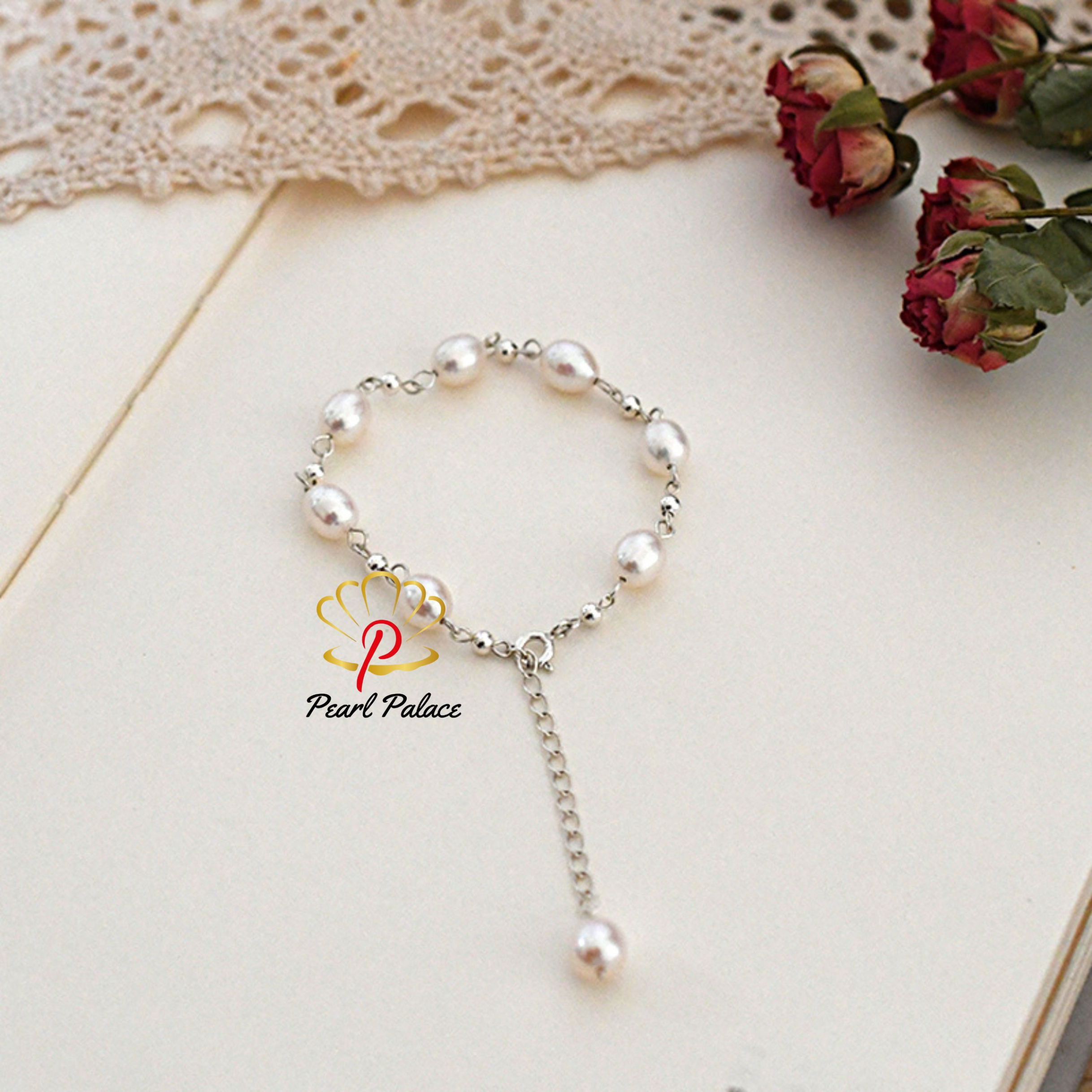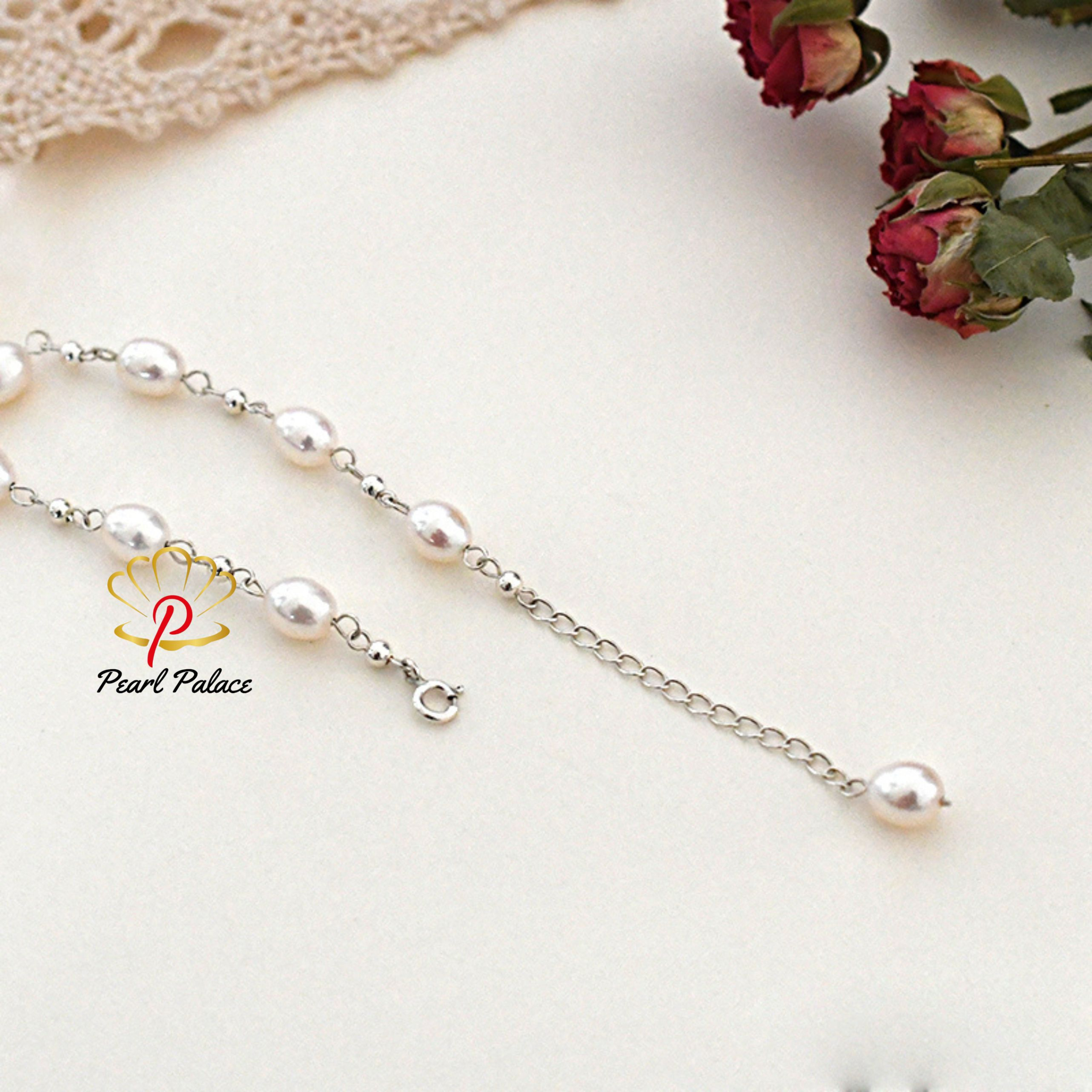 Natural freshwater pearl bracelet 925 Sterling silver beads handmade Jewelry for Women Pearl Size: 7-8mm Length: 17cm add 3cm Chain extension